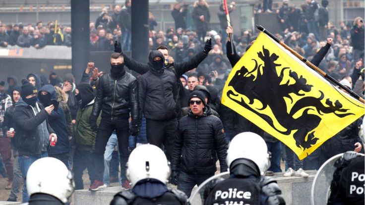 Flemish right-wing parties called the march, which took place near major EU institutions, amid fears the pact could lead to an increase in immigration.